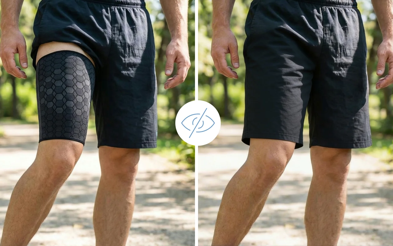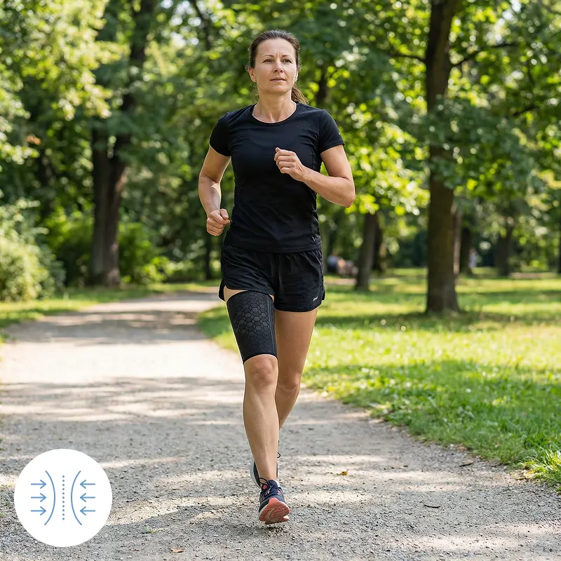 Beruhigen Sie schmerzende Muskeln schnell und verringern Sie Beschwerden bei Bewegung. Bleiben Sie aktiv mit stabiler Unterstützung für Ihren oberen Oberschenkel.