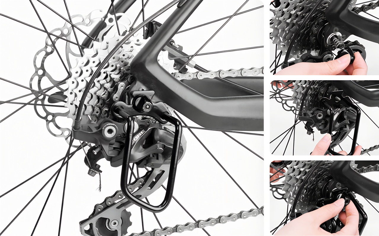 Ich war überrascht, dass er an beide meiner Fahrräder passt! In wenigen Minuten montiert. Kein Sorgen mehr um die Gangschaltung nach einem Sturz.