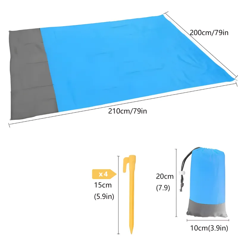 Mein Hund und ich lieben diese Strandmatte! Kein Sand mehr unter meinem Essen und ihre Pfoten machen keinen Schmutz. Die Anker sind ein schönes Extra.
