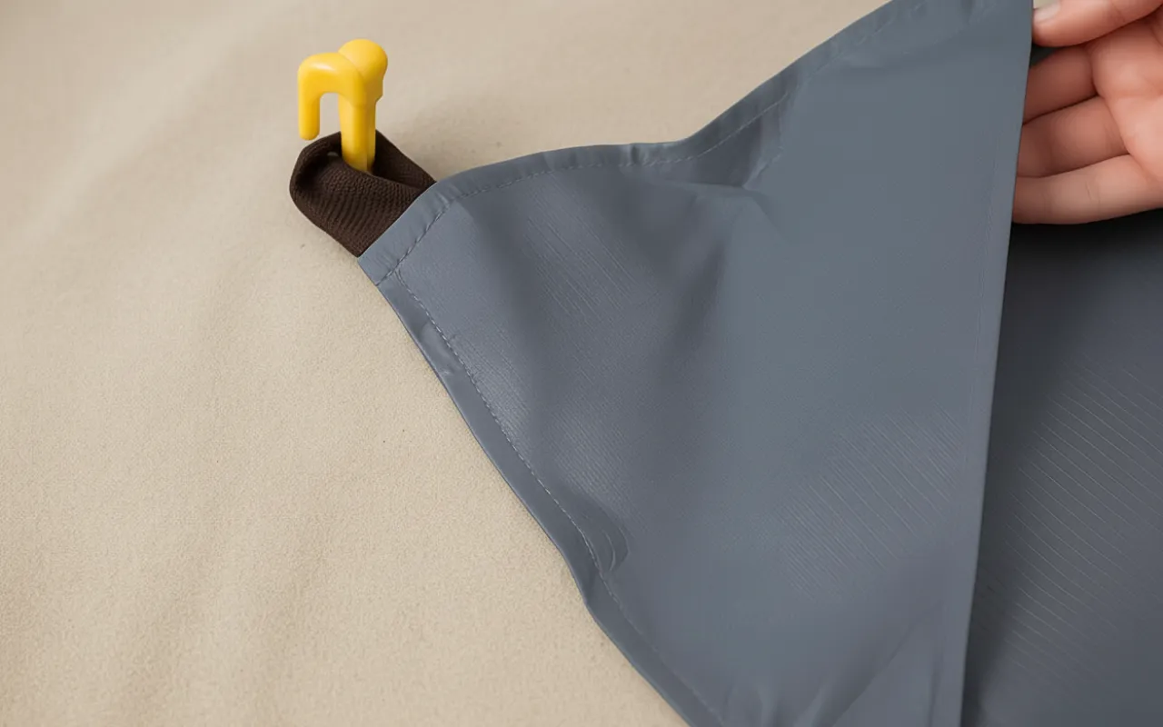Eingebaute Anker und Taschen mit Reißverschluss schützen Ihre Wertsachen jederzeit. Wind kann keine Ecken anheben, und Ihre Sachen bleiben sicher.