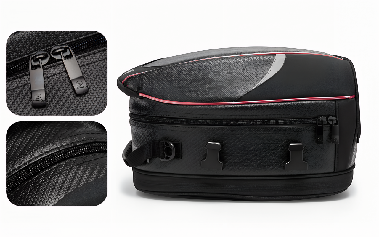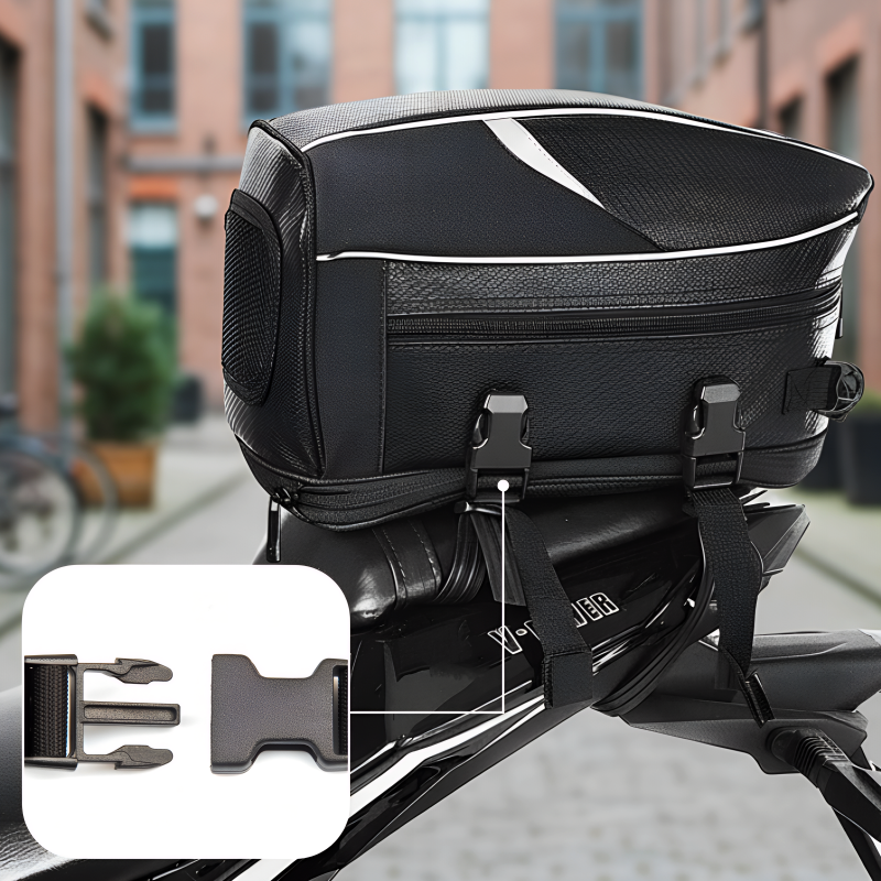 Starke Verschlüsse verhindern Bewegungen während der Fahrt. Die Tasche bleibt selbst auf unebenen Wegen fest an ihrem Platz.