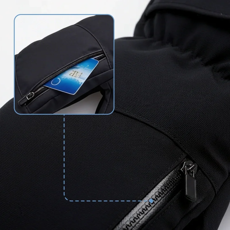 Es ist einfach, den Schlüssel im Reißverschlussfach zu verstauen, wenn ich im Schnee spiele. Sie werden innen nicht nass, was super ist.