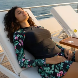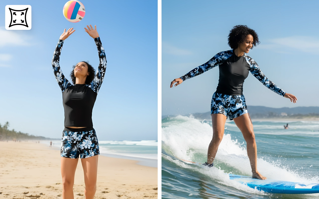 Lange Ärmel und Shorts schützen empfindliche Haut vor Sonnenbrand. Bleiben Sie sorgenfrei beim Schwimmen, Surfen oder Entspannen am Pool.