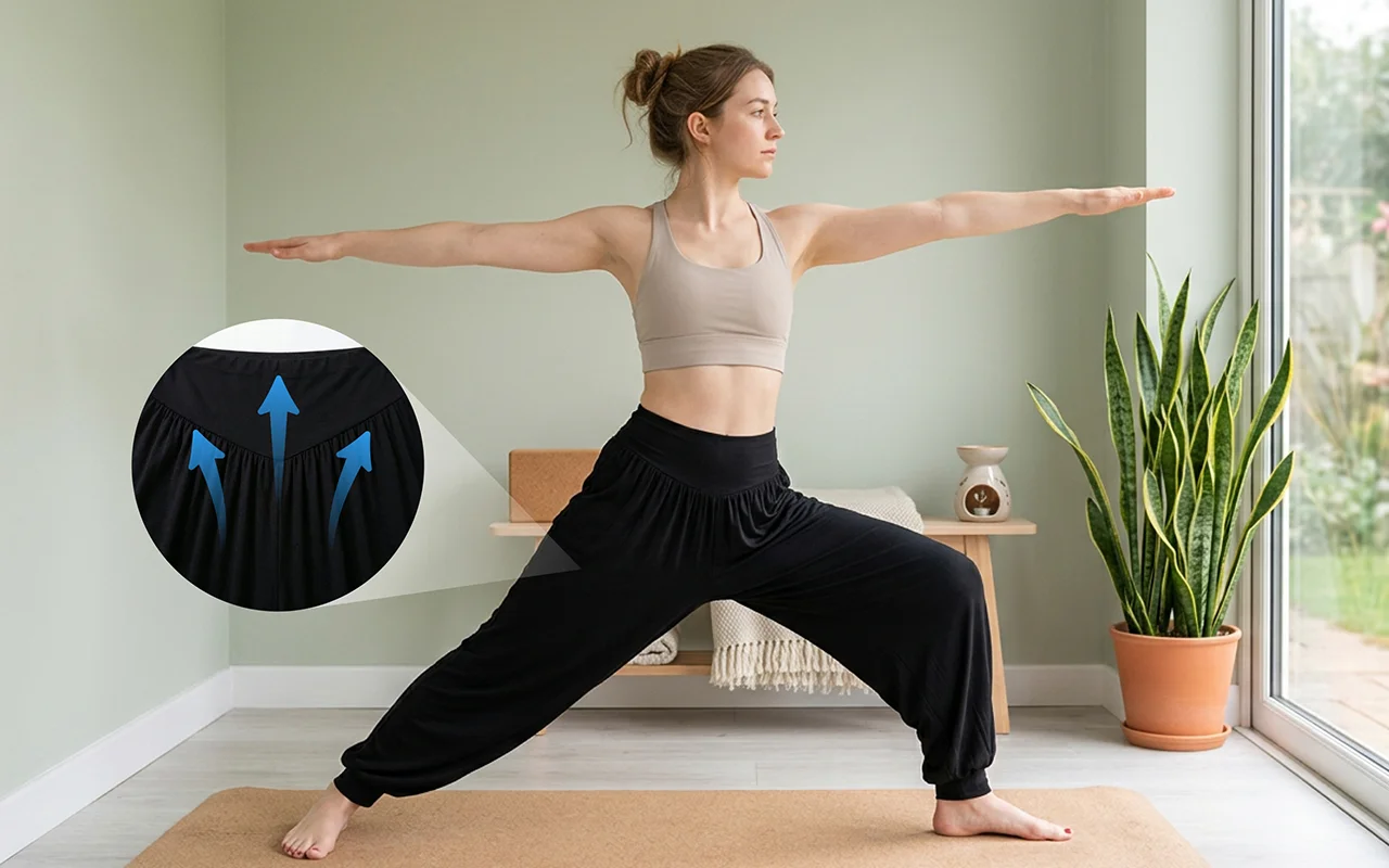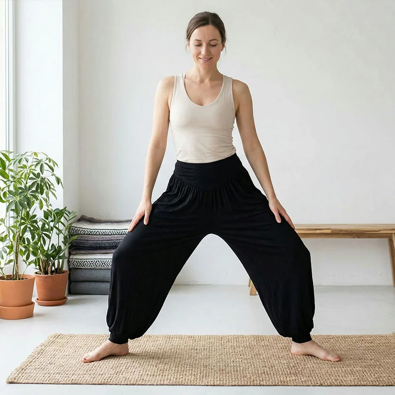 Diese Haremshose ist mein neuer Favorit für Yoga und faule Sonntage. Sie bleibt an Ort und Stelle, klebt nie, und der Stoff fühlt sich den ganzen Tag wie ein weicher Schlafanzug an.