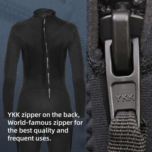 ✔️ SCHNELLER EIN- und AUSSTIEG: Ausgestattet mit einem Klettverschluss am Halsausschnitt und einem durchgehenden Reißverschluss am Rücken, ist es schnell und einfach, den Neoprenanzug an- und auszuziehen.