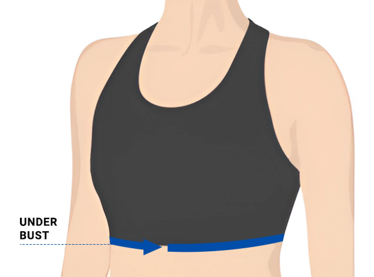 - 1. Legen Sie das Maßband um Ihren Brustkorb, direkt und gleichmäßig unter Ihrer Brust.